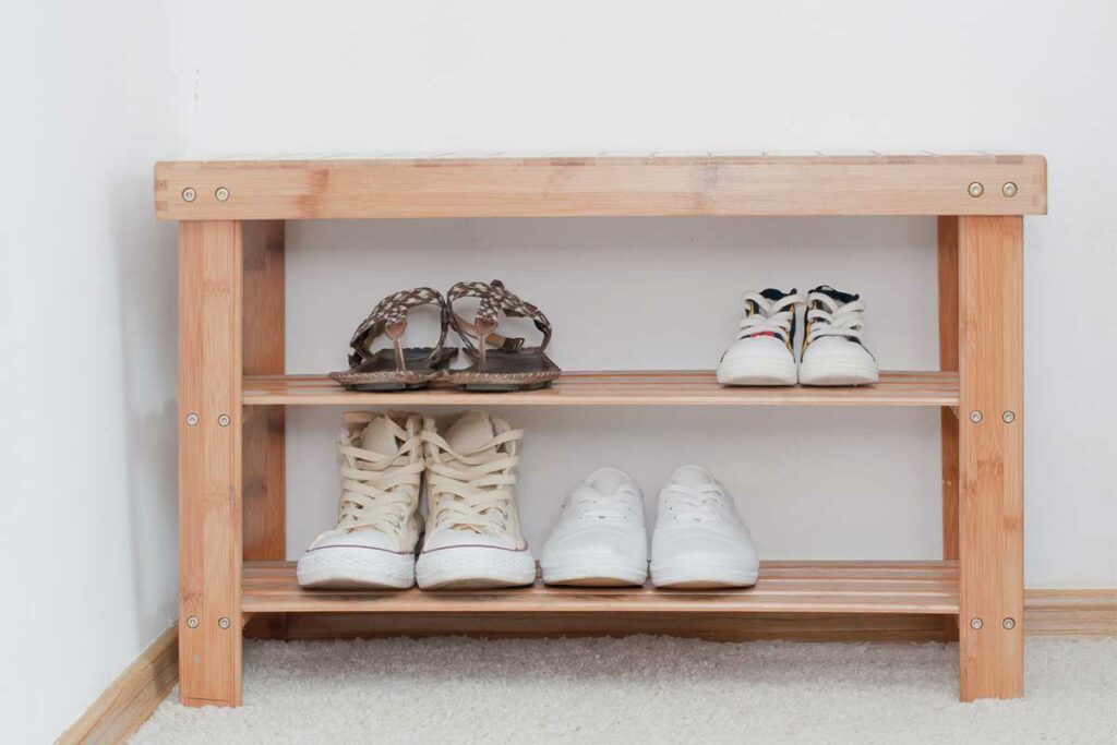 - Don’t underestimate doormats – Keep a doormat by the front door to wipe down shoes before storing them. This will help to cut down on the debris left on your shoes and make it easier to clean your shoe station. If you are hoping to keep shoes clean for future uses, it can help to spray a cloth with a kid-safe all-purpose cleaner and wipe them down before storing them.