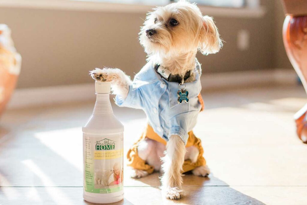 - Keep cleaning tools near the door – If your dogs don’t want to stop at the door, it can help to keep a mop and a kid-safe all-purpose cleaner by the door. Simply spray the mop and quickly wipe up any messes when they happen to avoid a bigger mess later.