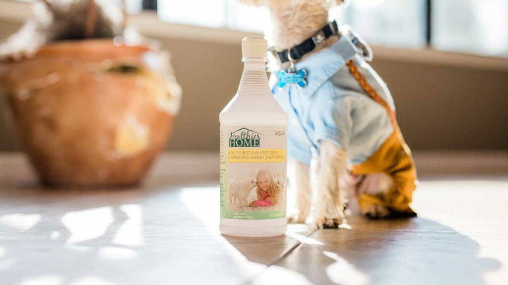 Healthier Home Products’ 5-in-1 Pet Odor Eliminator Carpet Stain Remover and the Hardfloor 6-in-1 Pet Odor Eliminator & Cleaner are both safer cleaning products you can use to refuse those stubborn pet odors and leave your home fresh and clean.