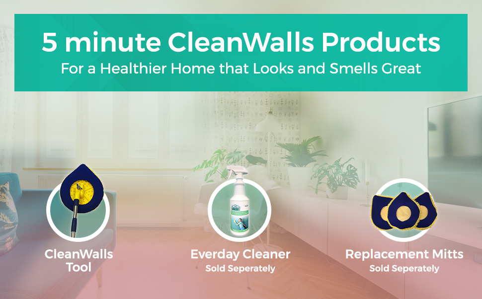 CleanWalls tool is the first tool designed to clean walls, baseboards and ceilings in minutes.